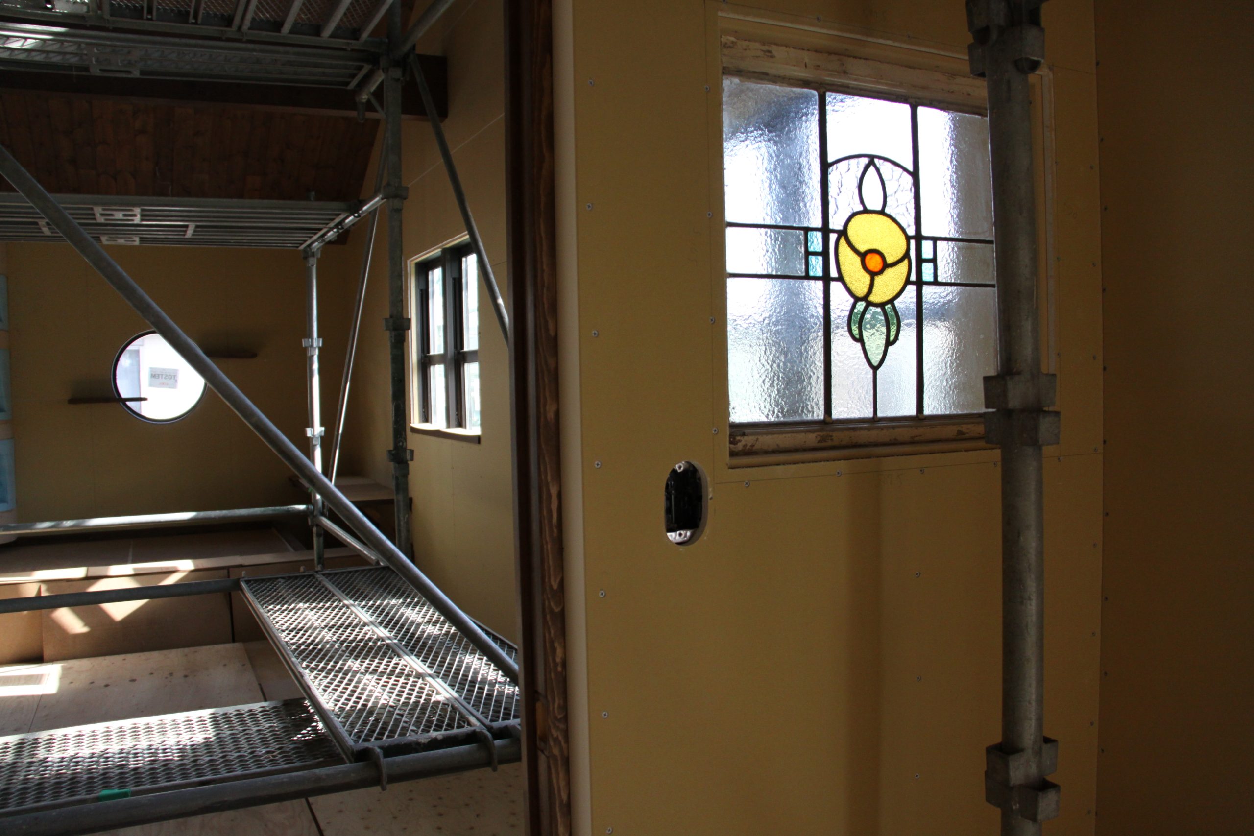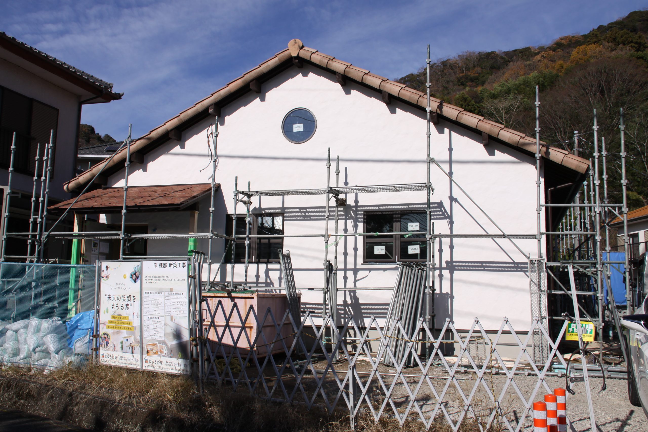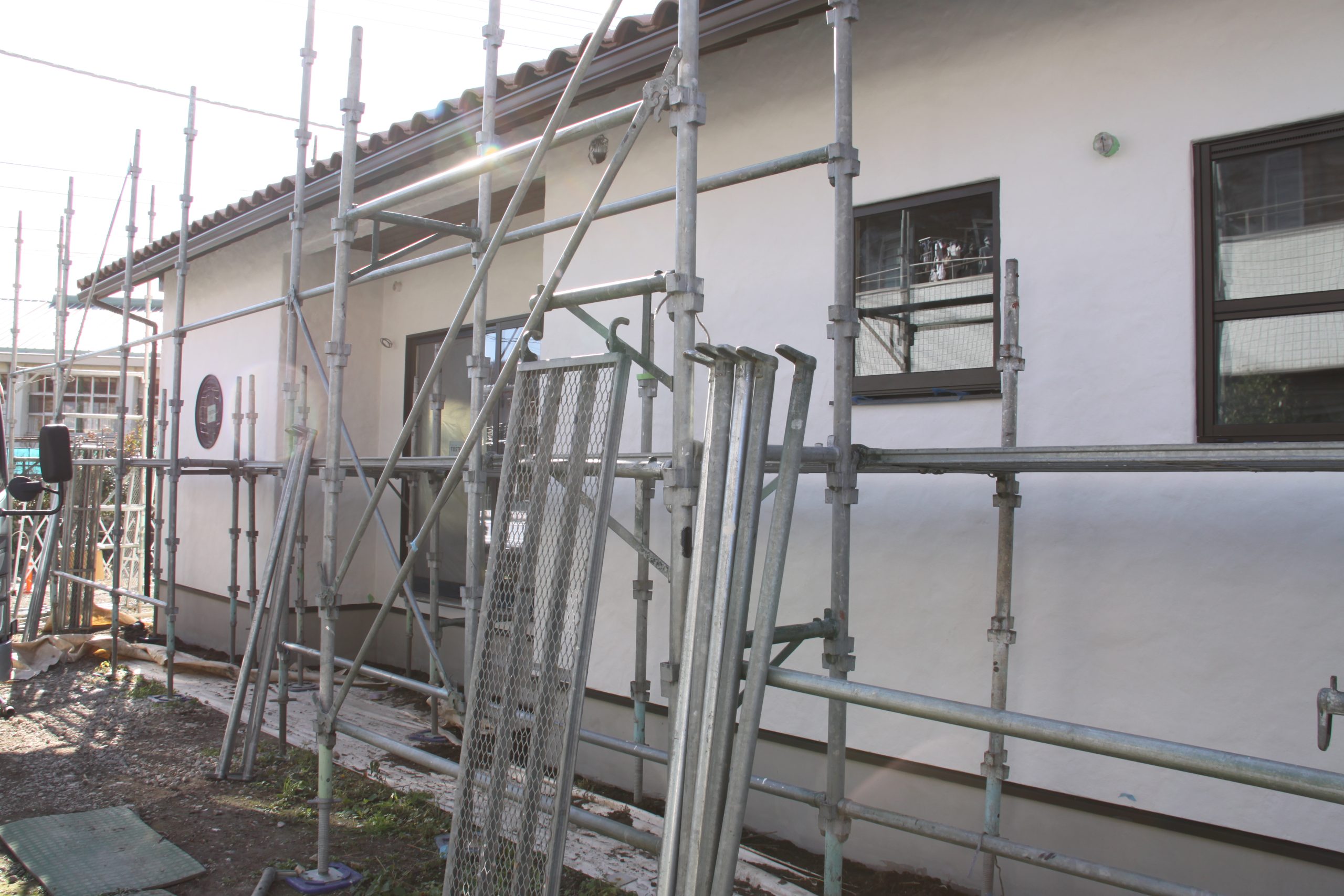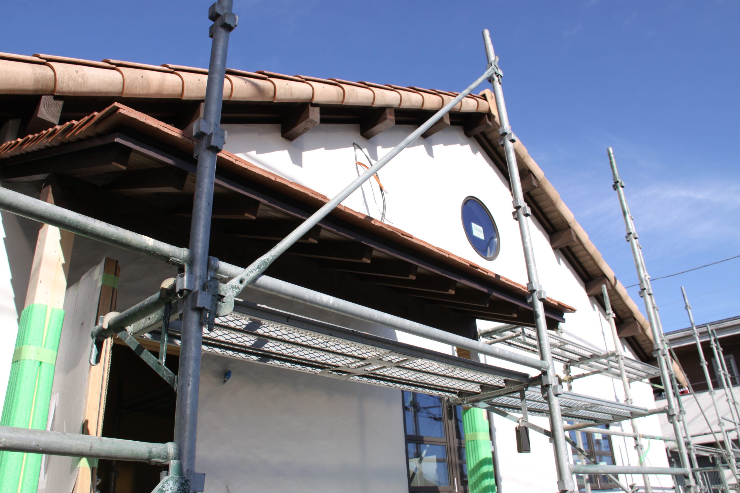 足場屋さんが足場の撤去へ来てくださり、これまで隠れていた外観が、少しずつ姿を現してきました。