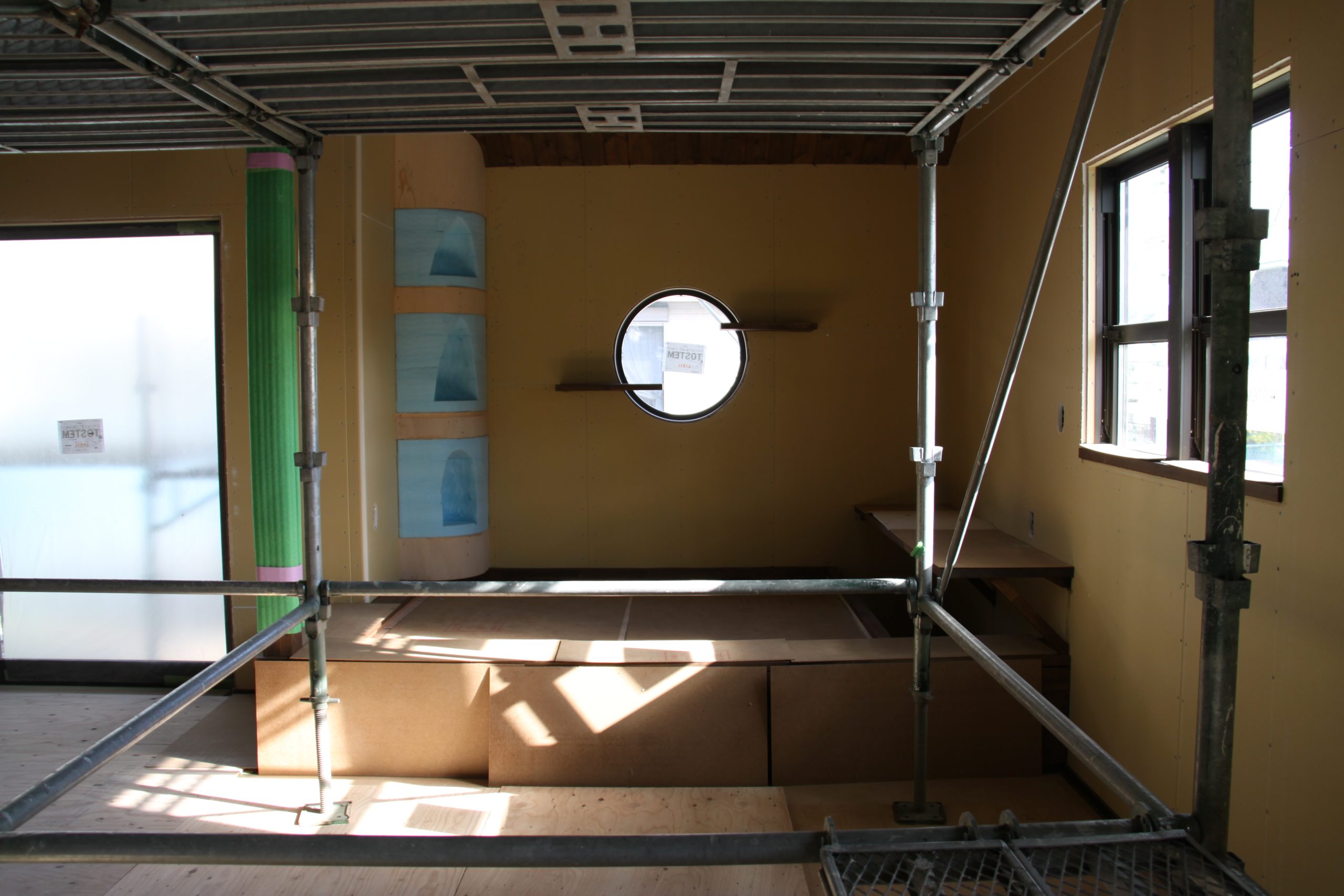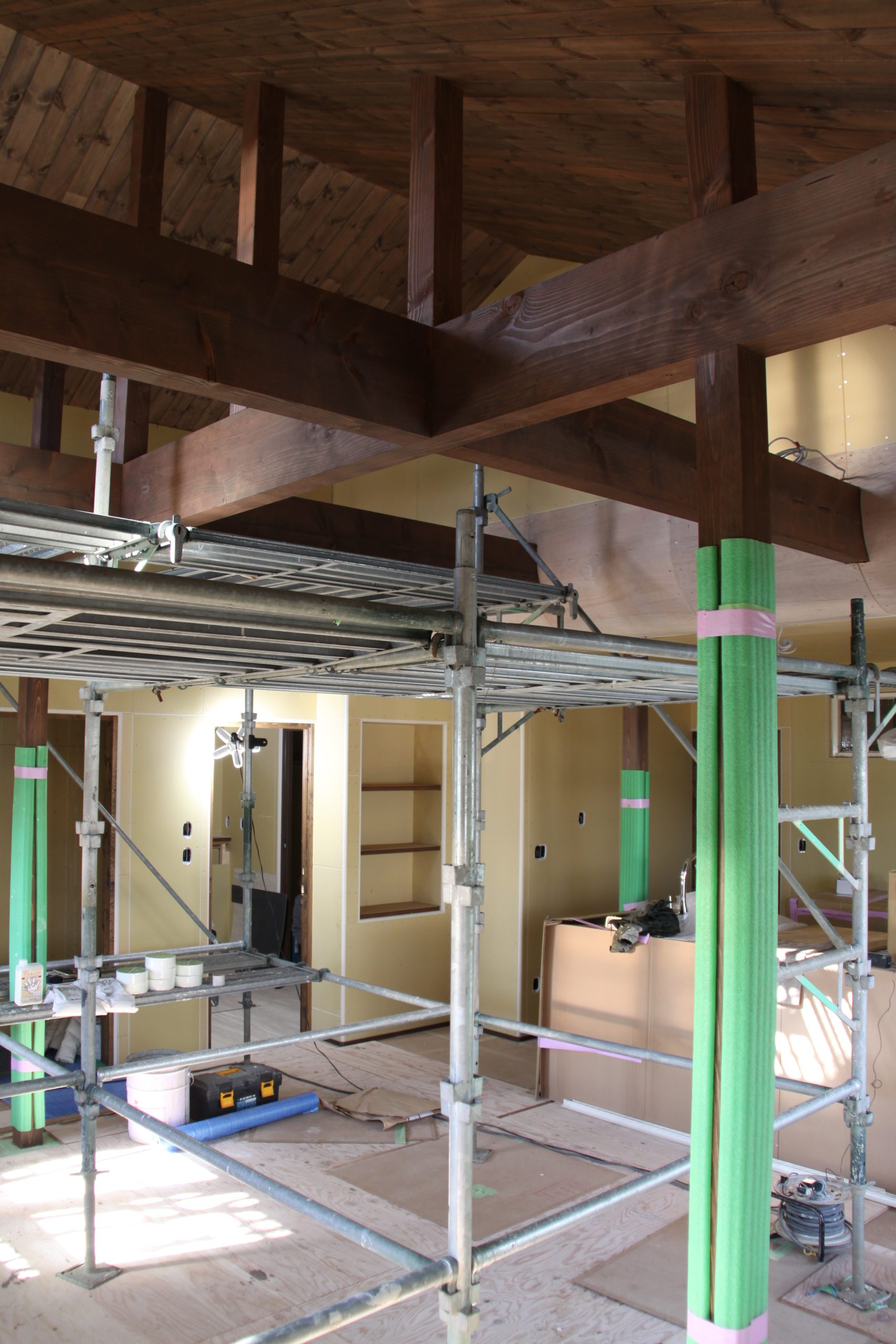 室内では塗り壁の下地が整い、これから重ねられる左官の仕事が、空間に温もりと深みを与えてくれる準備ができていました。