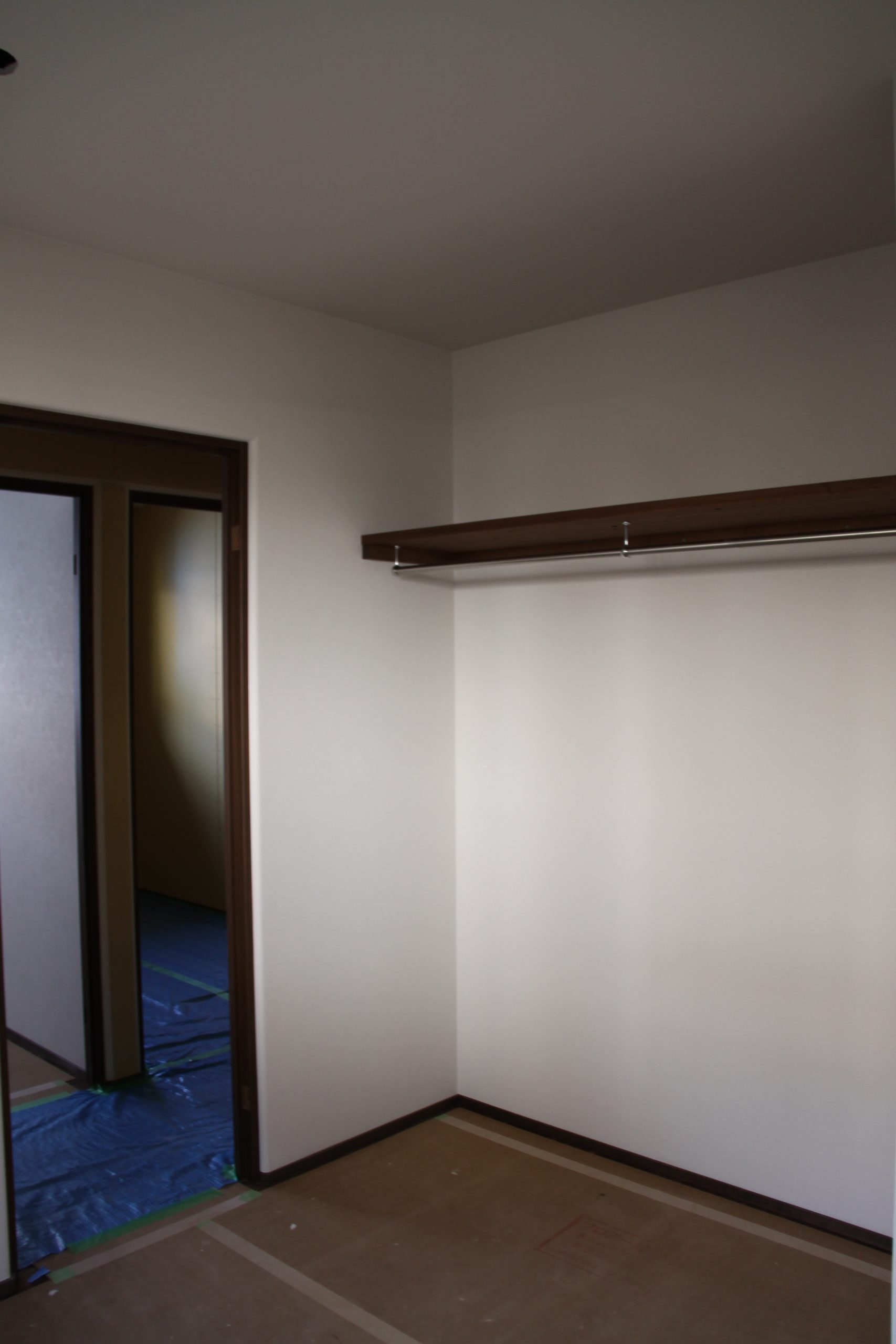 クロス仕上げのお部屋では、壁紙が丁寧に張られ、空間の輪郭がはっきりとしてきました。