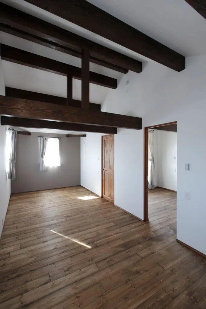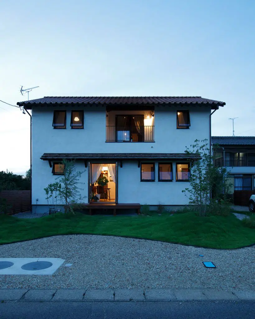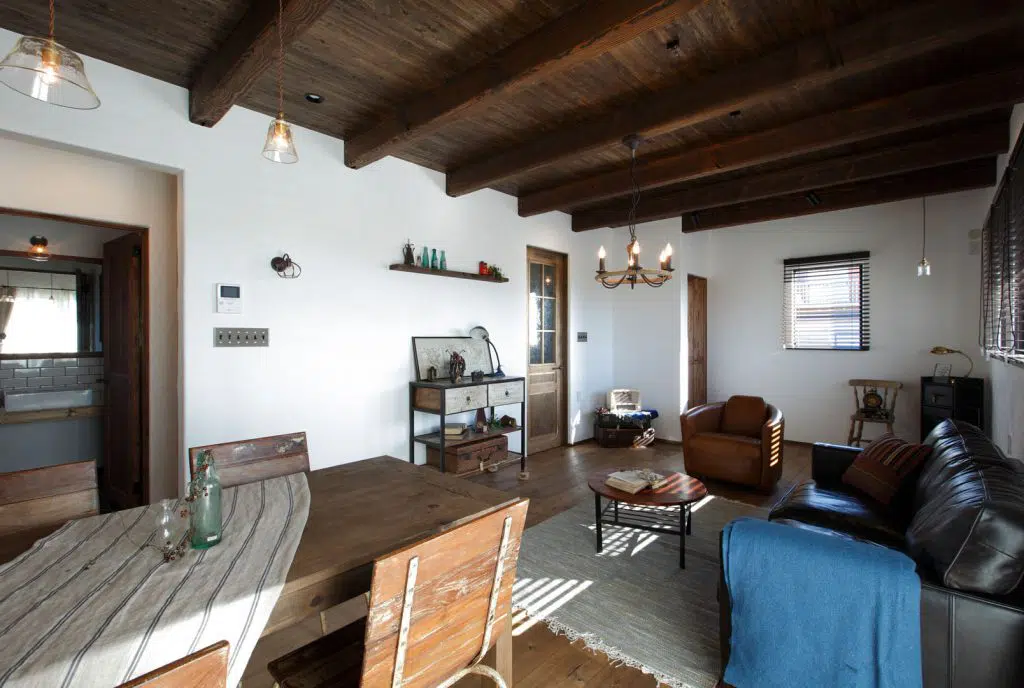 南フランスの田園にぽつんと建つ農家のように、時間をかけて育まれたような趣を新築で叶える家。ヴィンテージ加工を施した梁や床は、陽射しで陰影を深め、凹凸のある塗り壁は手仕事の温もりを映し出す。均一でないことが美しさになる、素朴で飽きのこないデザイン。暮らすほどに素材が味わいを増し、自分だけのアンティークになっていく──そんな時間を楽しむ住まいです。