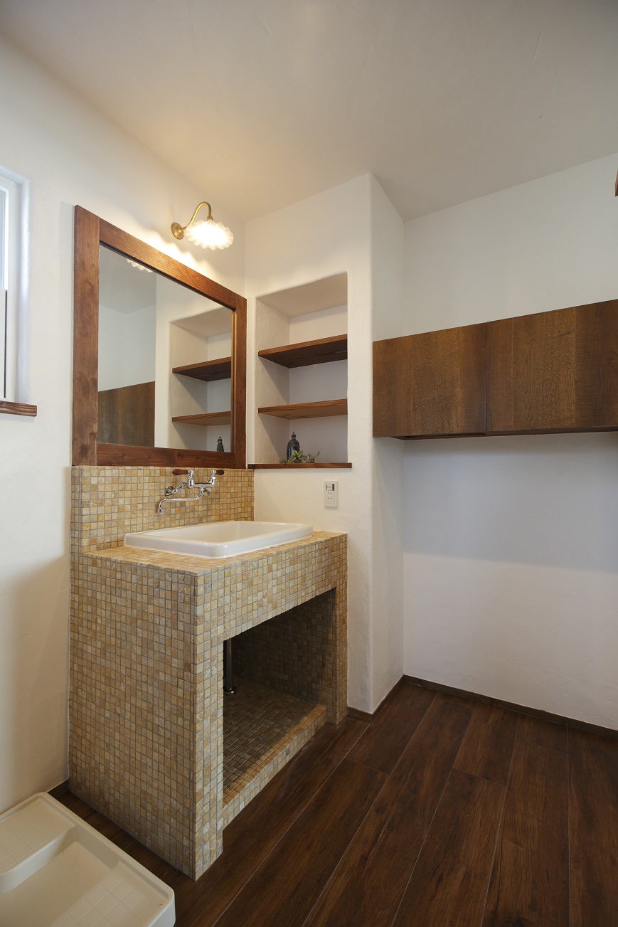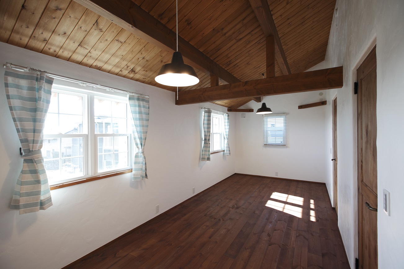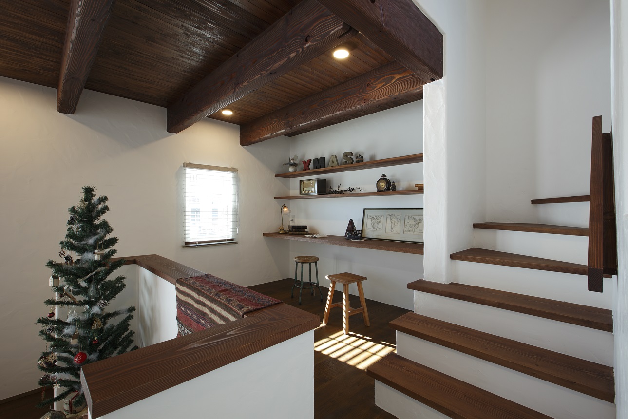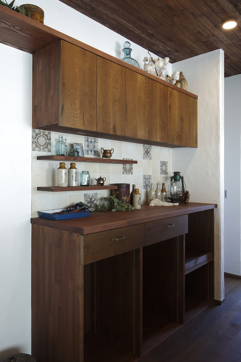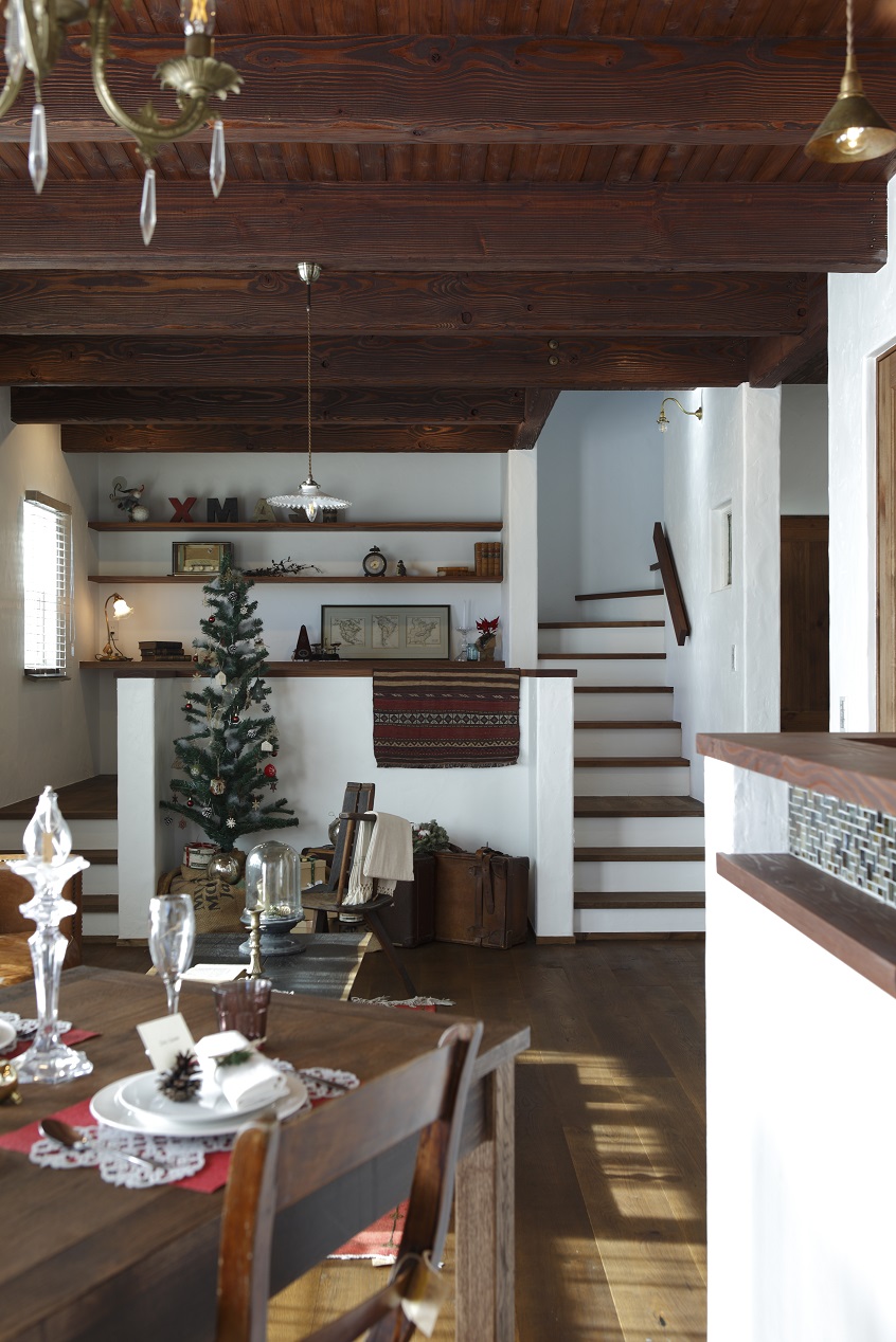 南フランスの田園にぽつんと建つ農家のように、時間をかけて育まれたような趣を新築で叶える家。ヴィンテージ加工を施した梁や床は、陽射しで陰影を深め、凹凸のある塗り壁は手仕事の温もりを映し出す。均一でないことが美しさになる、素朴で飽きのこないデザイン。暮らすほどに素材が味わいを増し、自分だけのアンティークになっていく──そんな時間を楽しむ住まいです。
